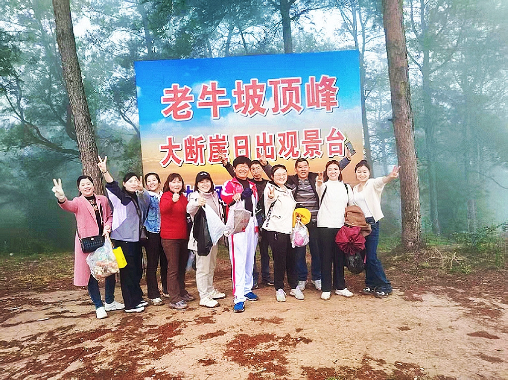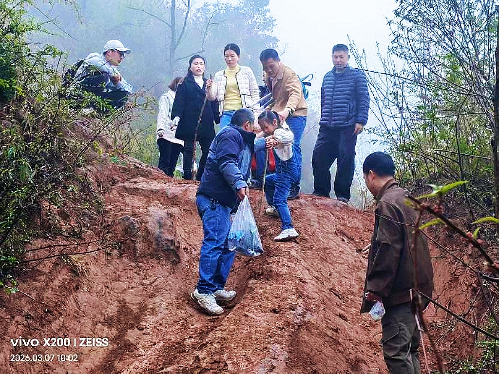 2026 年 3 月,百源智造二十周年之际,团队赴金堂老牛坡开展环保徒步。细雨大雾中,众人冒泥泞捡垃圾,互帮互助,老少参与,于奉献与陪伴中体悟幸福,传递正能量。